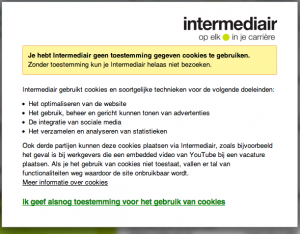 23. Een tip voor bedrijven (ondernemers) die een afmeld-link gebruiken in hun e-mail(ing) die land op de website waar cookies vereist zijn. vanochtend wilde ik mij uitschrijven van een e-mailing die ik toch niet lees... meteen een kleine test case...om verder te gaan op de website (intermedair vnu) MOET je cookies accepteren... dus ook voor het 'alleen' uitschrijven.. als je dat niet accepteert kom je niet verder... ik denk dat je dit moet vermijden... voor je het weet heb je de opta op je dak :-)